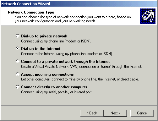- Select Dial-up to the Internet.