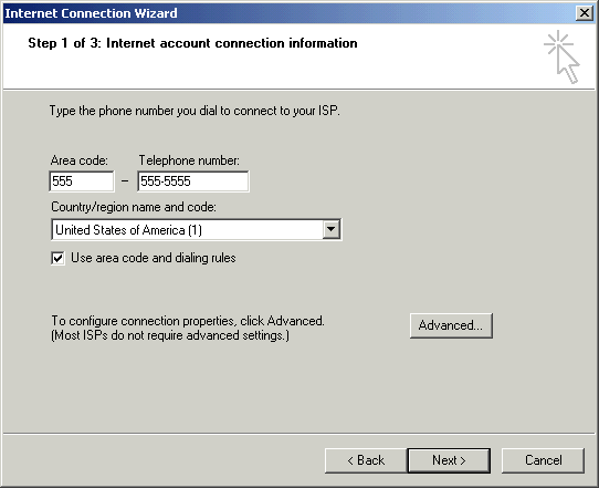 - Select I connect through a phone line and a modem.